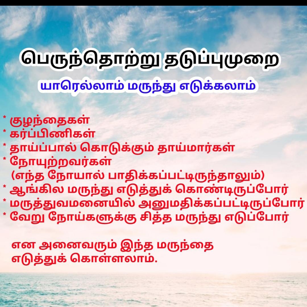 ** தடுப்பு மருந்தாக எடுப்பவர்கள் 3 நாட்கள் எடுத்தால் போதும்.